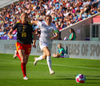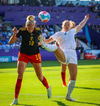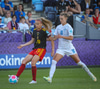 Það er eitthvað um peysutog og tilraunir sem fara í belgíska varnarmenn. Þetta endar svo á tilraun frá Glódísi sem fer yfir mark Belgíu.
