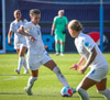 Sif vinnur boltann við miðlínuna, finnur Karólínu sem rennir boltanum áfram á Berglindi.