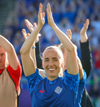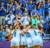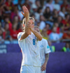 Rétt í þessu var lagið Ég er kominn heim spilað í hátalarakerfinu hér á vellinum og tóku stuningsmenn íslenska liðsins vel undir. Gæsahúðar augnablik!