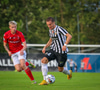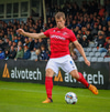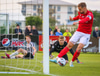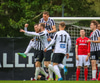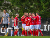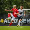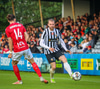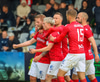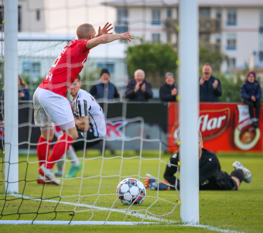 Boltinn berst út fyrir teiginn eftir misheppnaða tilraun frá Ágústi og Theódór Elmar lætur vaða og smellir honum í fyrsta í vinstra markhornið. Mjög gott skot og Frederik á ekki möguleika í markinu.