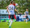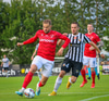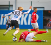 Ægir Jarl með skottilraun sem Haukur Páll kemst fyrir. Haukur liggur sárþjáður eftir.