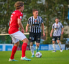 Patrick brýtur á Beiti og fær gult spjald fyrir.