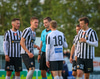 Gult spjald fyrir að toga í Juelsgård sýndist mér. Kennie allt annað en sáttur.