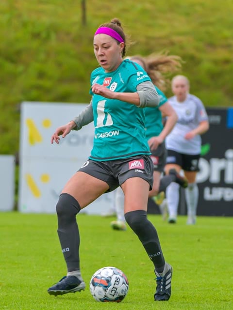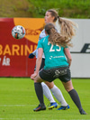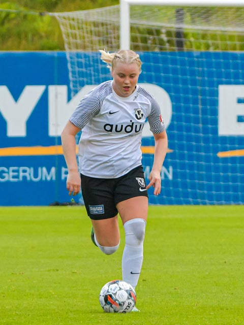 Rannveig reynir langan bolta upp á Telmu, Rósey skýlir boltanum vel og kemur honum í spil.