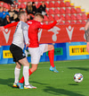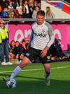 Matti Vill fær boltann og gerir vel, kemur boltanum upp á Davíð Snæ sem á fyrirgjöf og boltinn berst út á Kidda Frey sem nær skoti sem Haukur Páll kastar sér fyrir.