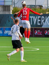 Ástbjörn fær boltann út til hægri og á góða fyrirgjöf beint á hausinn á Björn Daníel sem nær góðum skalla en Schram ver.