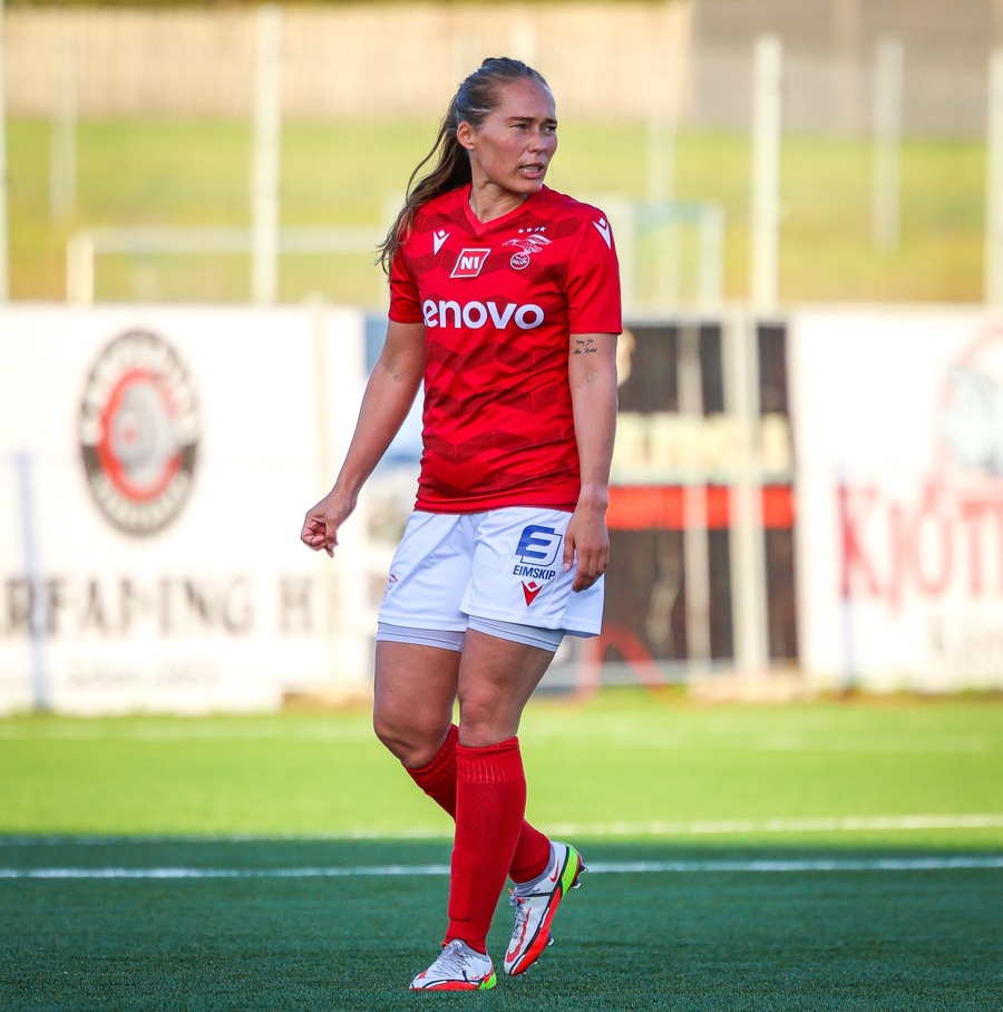 Gyða Kristín tekur spyrnuna en þrumar í varnarvegginn!