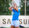 Valskonur vinna annað horn. Anna Rakel tekur aftur og setur boltann á sama stað og síðast. Í þetta skiptið skallar Jasmín Erla frá.