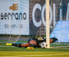 Anna Rakel skokkar yfir til hægri til að taka hornið fyrir Val. Hún setur boltann inn á markteig en Chante gerir vel í að grípa fyrirgjöfina.