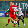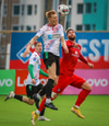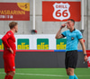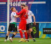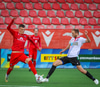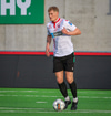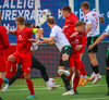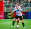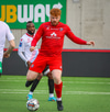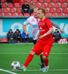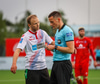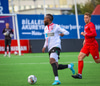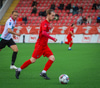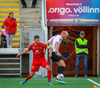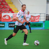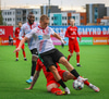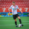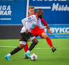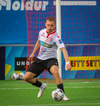 Oumar Diouck með skot úr aukaspyrnu beint í varnarvegginn, boltinn hrekkur á leikmann Hauka og Diouck mætir á vettvang og brýtur á honum.