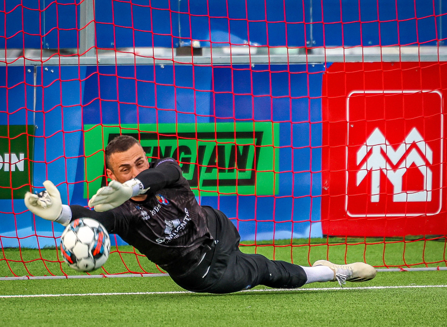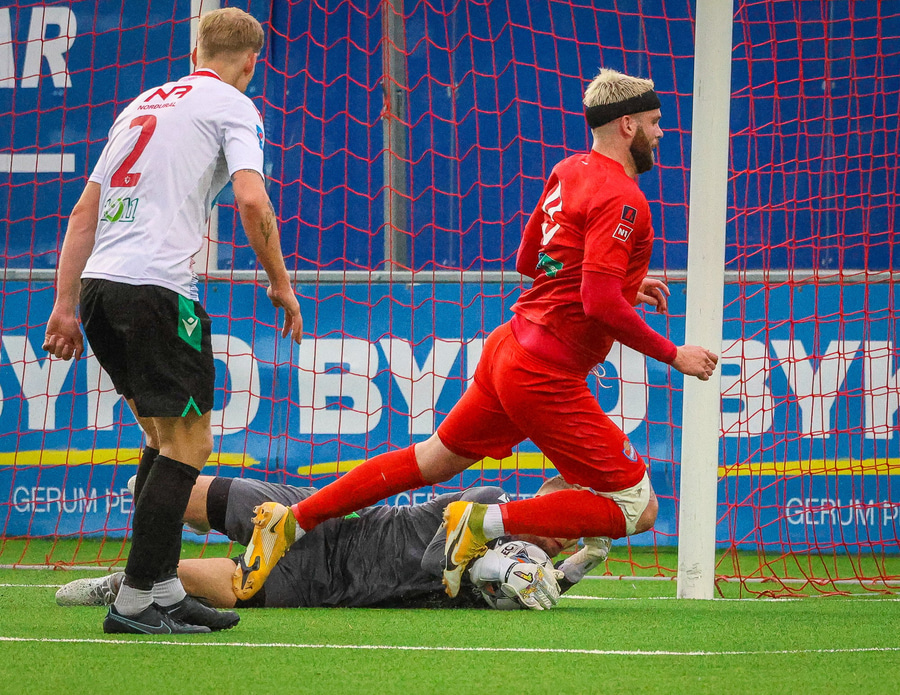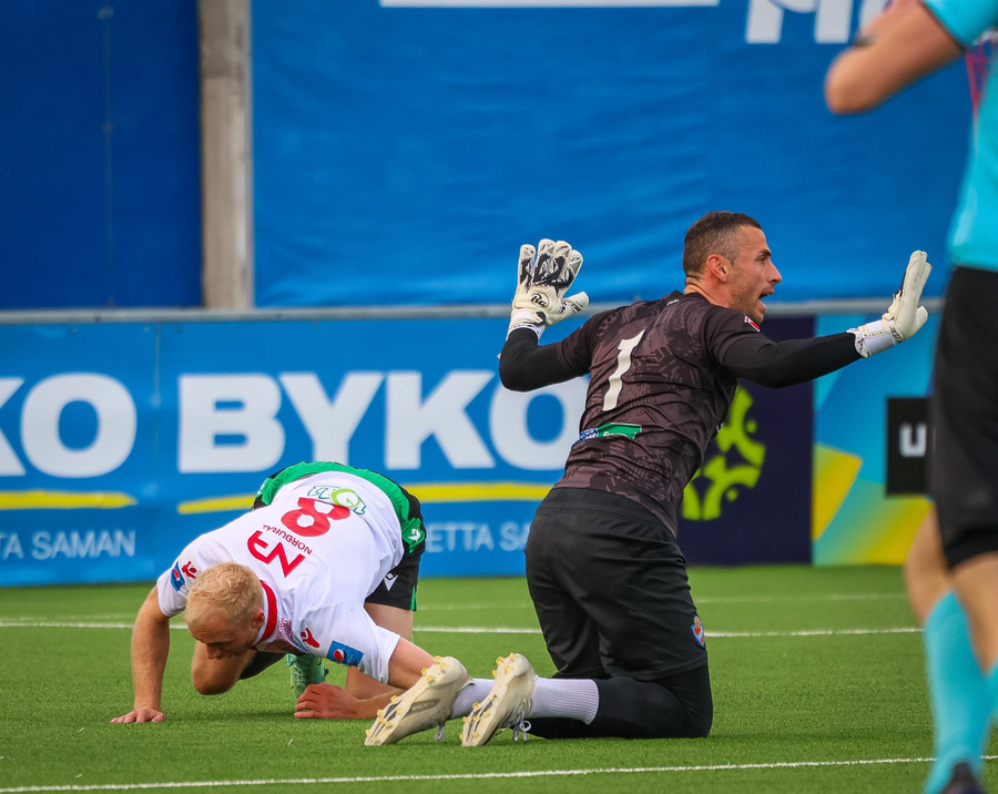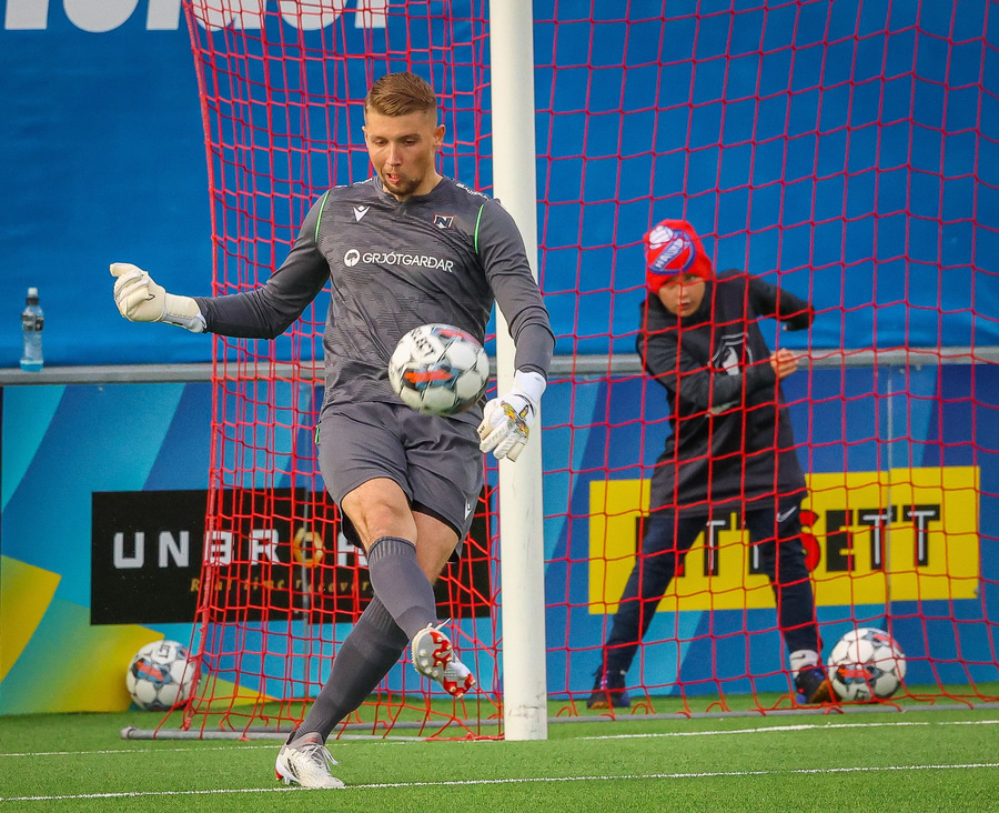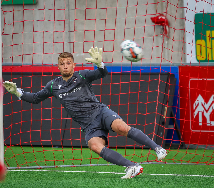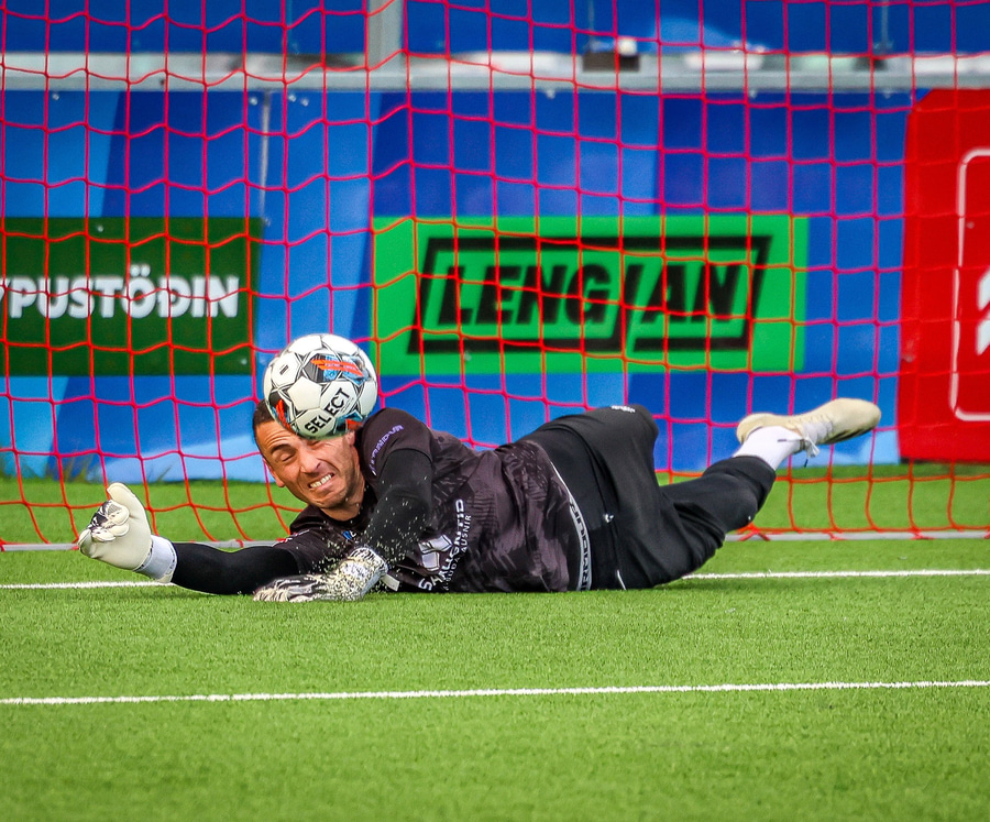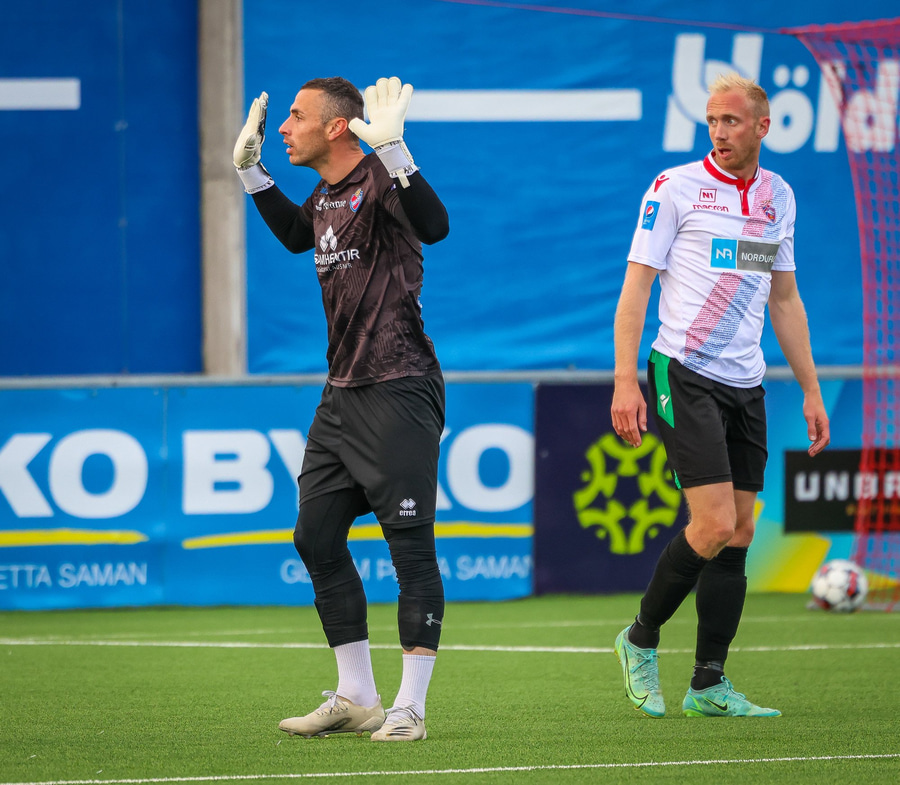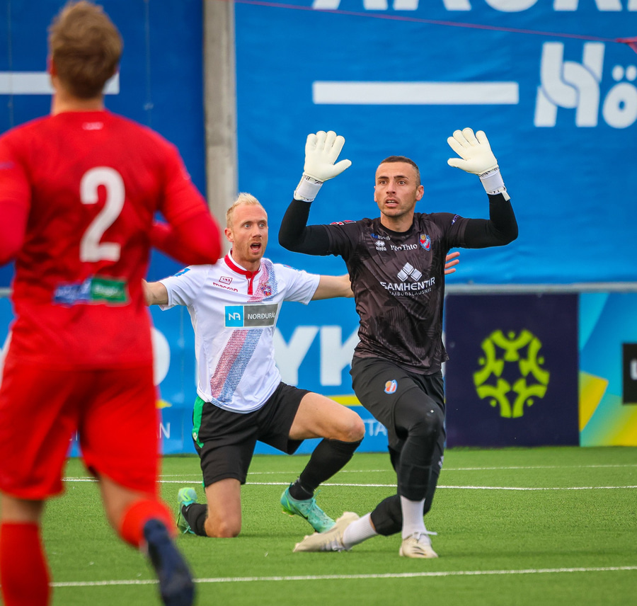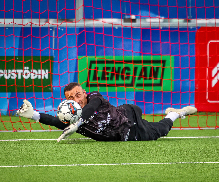 Milos Peric ver vítaspyrnuna!!! Fór í hárrétt horn og bætir upp fyrir brotið.