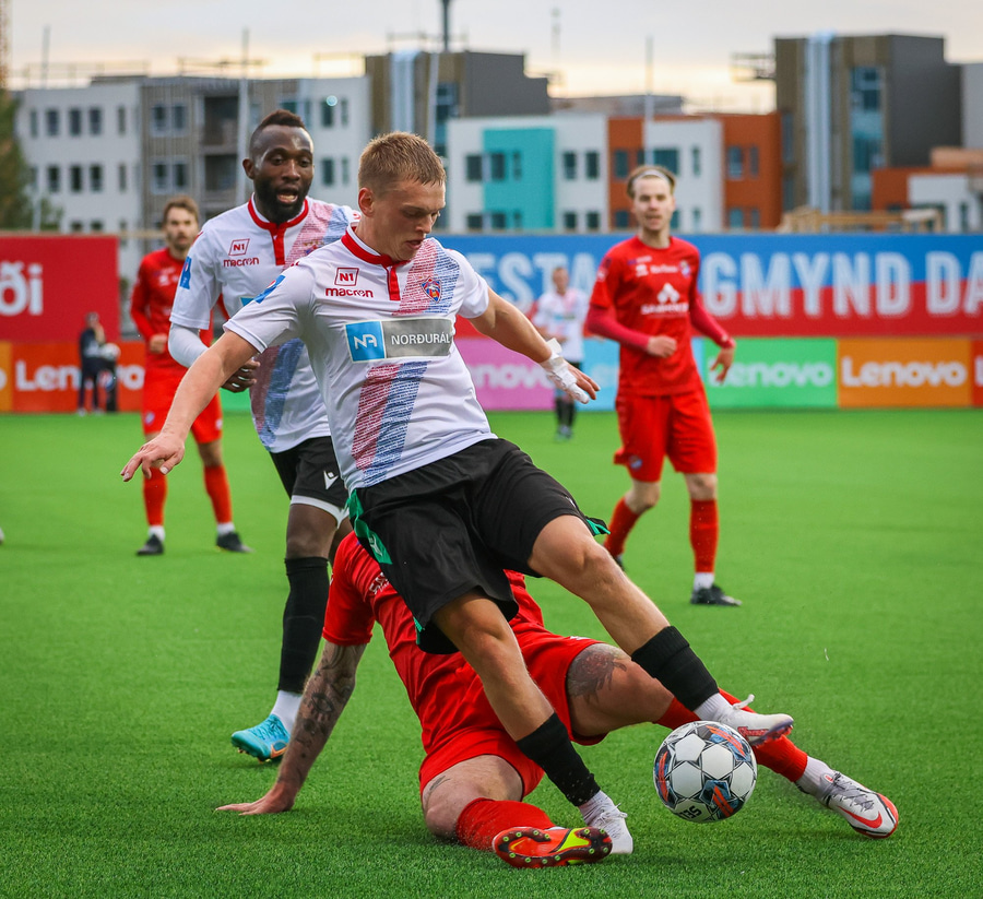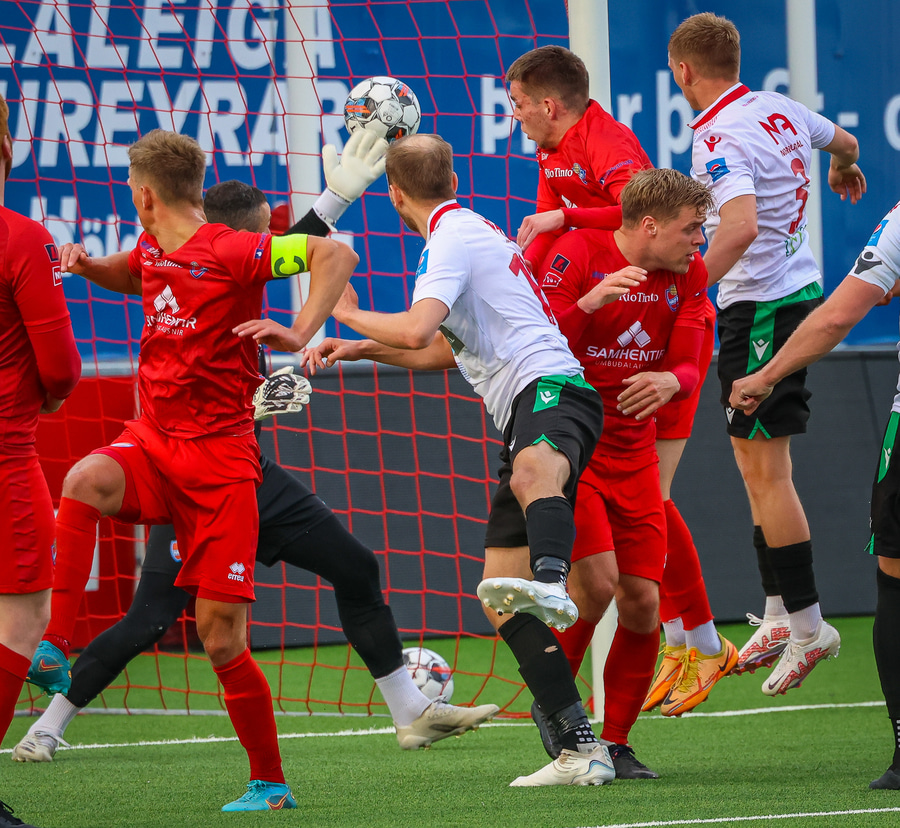 Lipur og flott Sókn Njarðvíkinga. Reynir Aðalbjörn með skot yfir markið eftir sendingu frá Hogg.