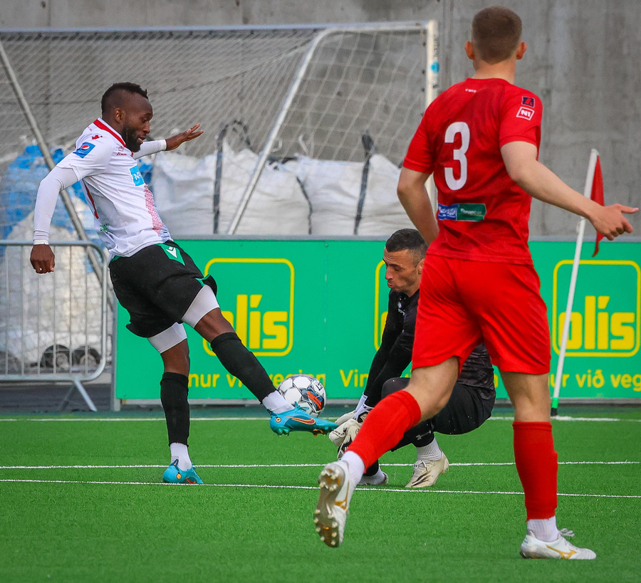 Oumar Diock leikmaður Njarðvíkur er markahæsti leikmaður 2. deildarinnar með 14 mörk.