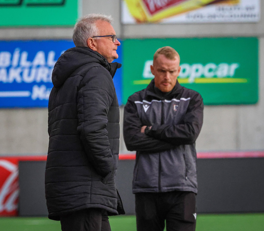 Haukar með skot rétt framhjá. Þetta er ekki komið í hús og það veit Bjarni Jó manna best í boðvangnum og býr sig undir að gera skiptingar til að éta af klukkunni.