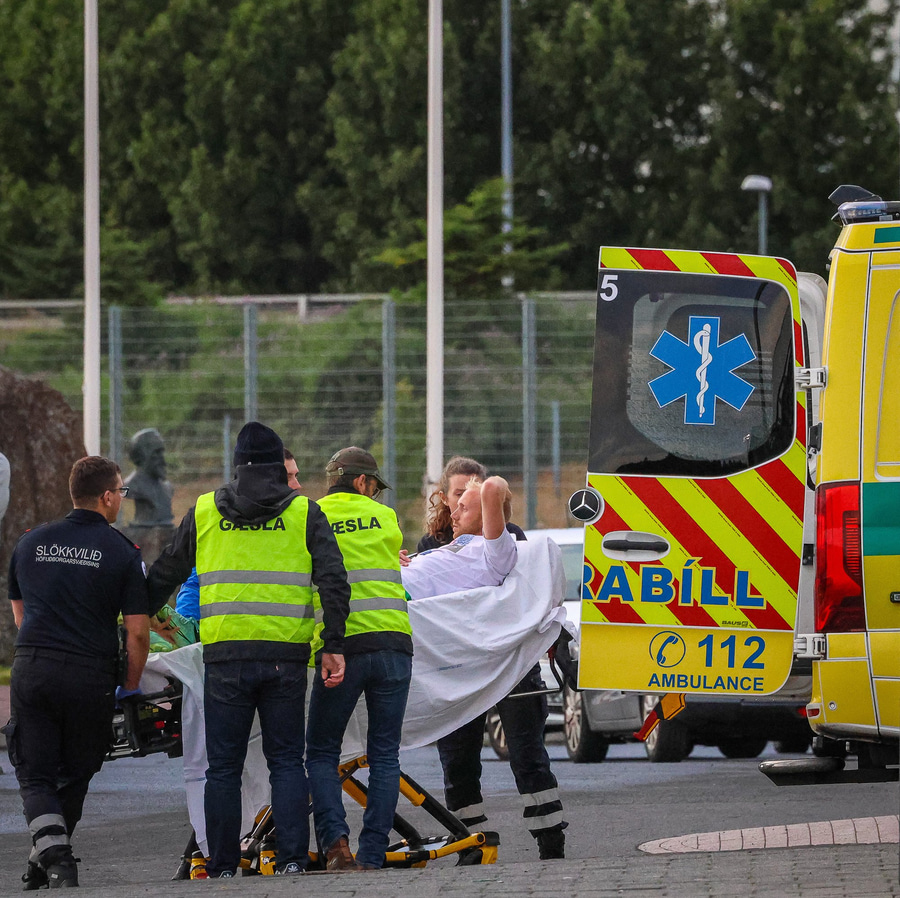 Vorum að fá þær upplýsingar að hnéskel Hogg hafi farið úr lið og það sé sjúkrabíll á leiðinni.