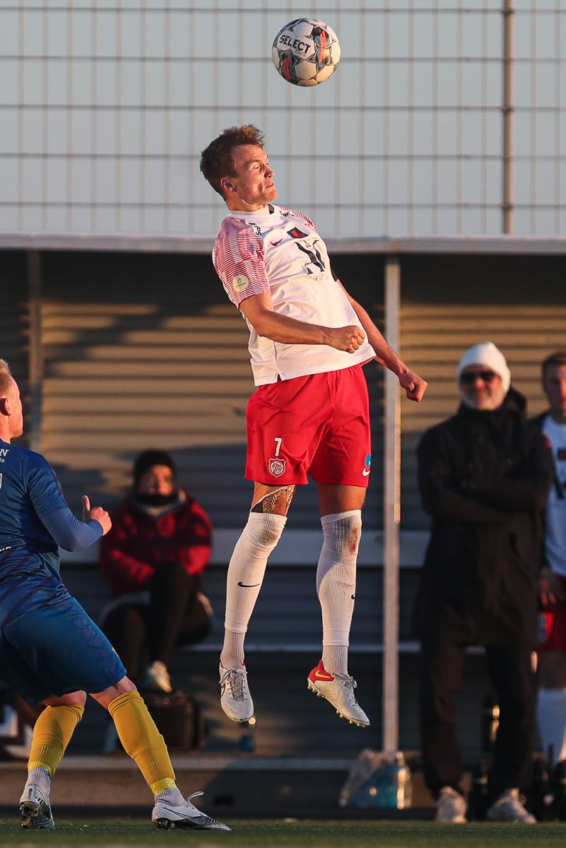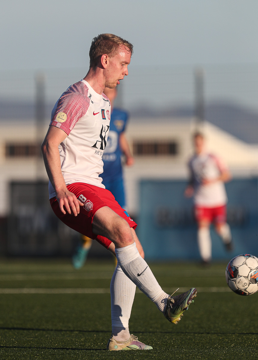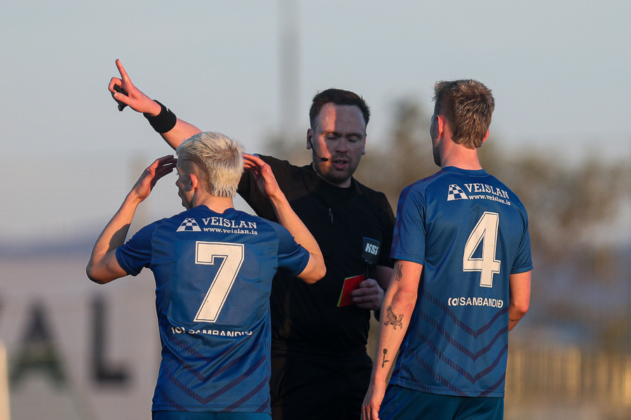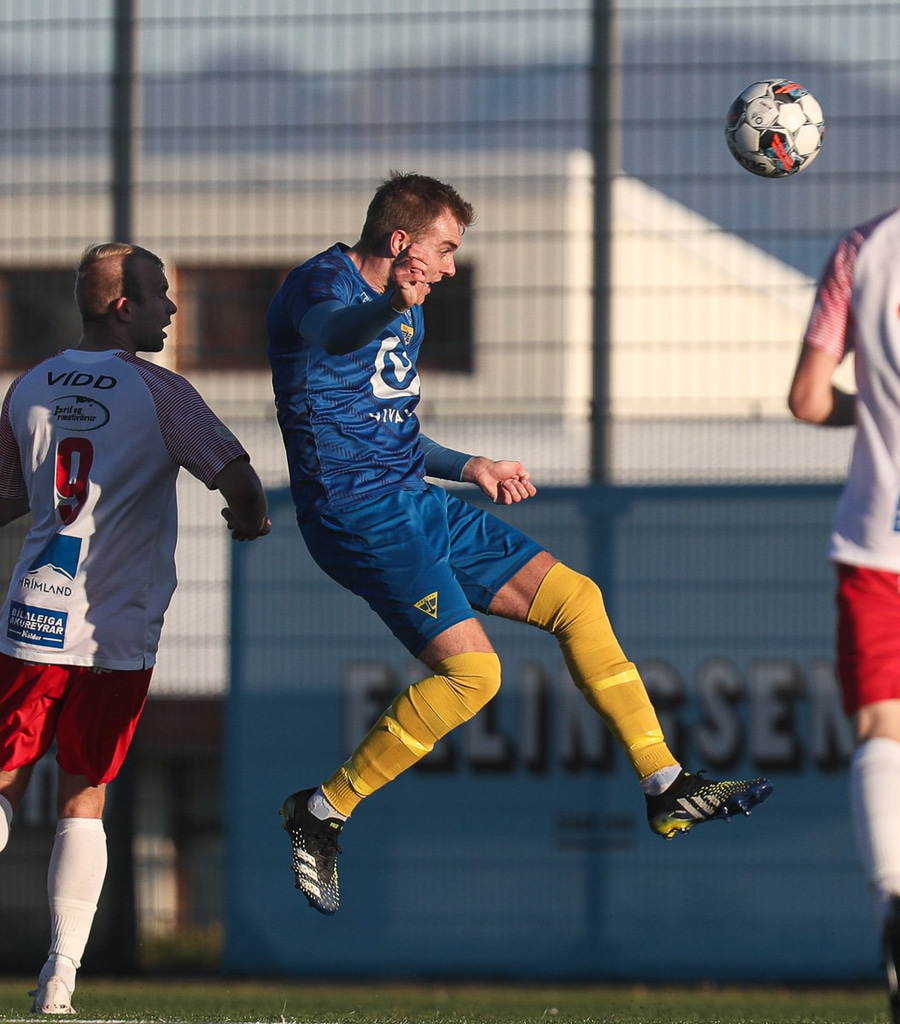 Kristófer Orri á hornspyrnu sem hann nær langt inn í teig og Elvar virðist ætla skalla boltann niður í jörðinna, en þetta verður að frábæru skallamarki sem fer, því miður fyrir Elvari, inn í hanns eigið net.