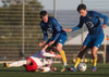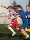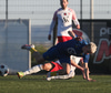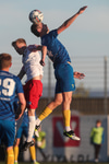 Boltinn lendir í teignum á Sigurð Marinó sem á skot sem fer yfir markið.