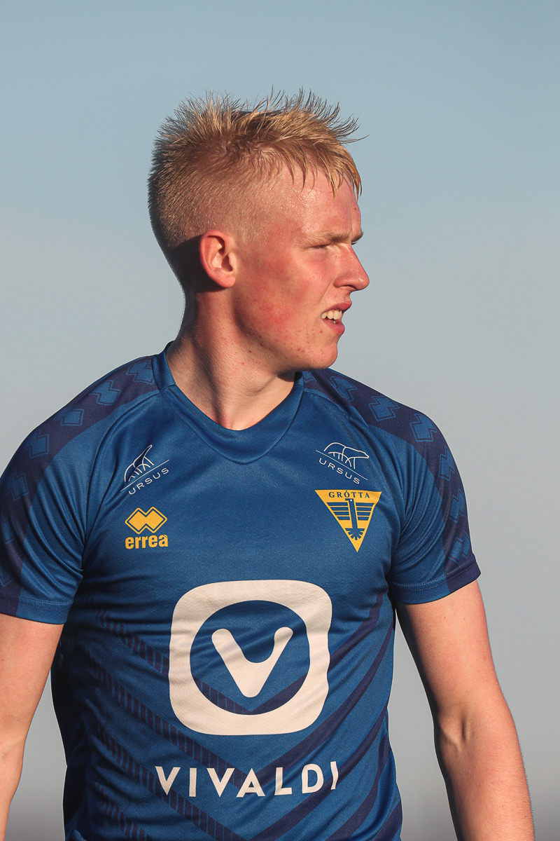 Grótta mikið að spila langa bolta upp, en þeir ná oft ekki á samherja eða fara bara útaf fyrir markspyrnu.