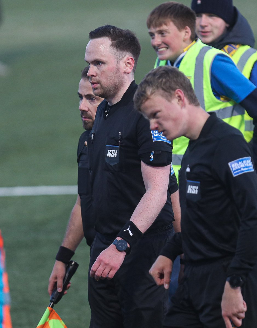 Þorlákur Már, þjálfari Þórs, er alls ekki sáttur með Arnar Inga dómara á hliðarlínunni.