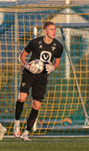 Arnleifur með spyrnu á markið, en beint á Jón Ívan í markinu.