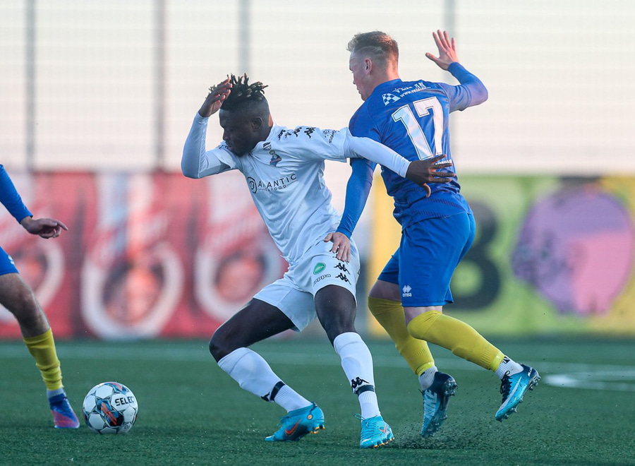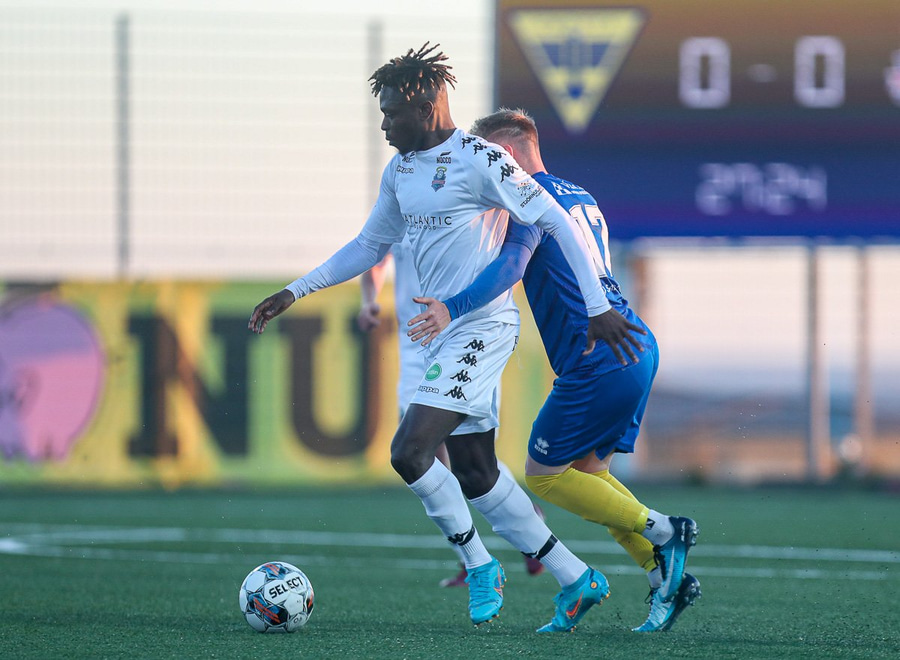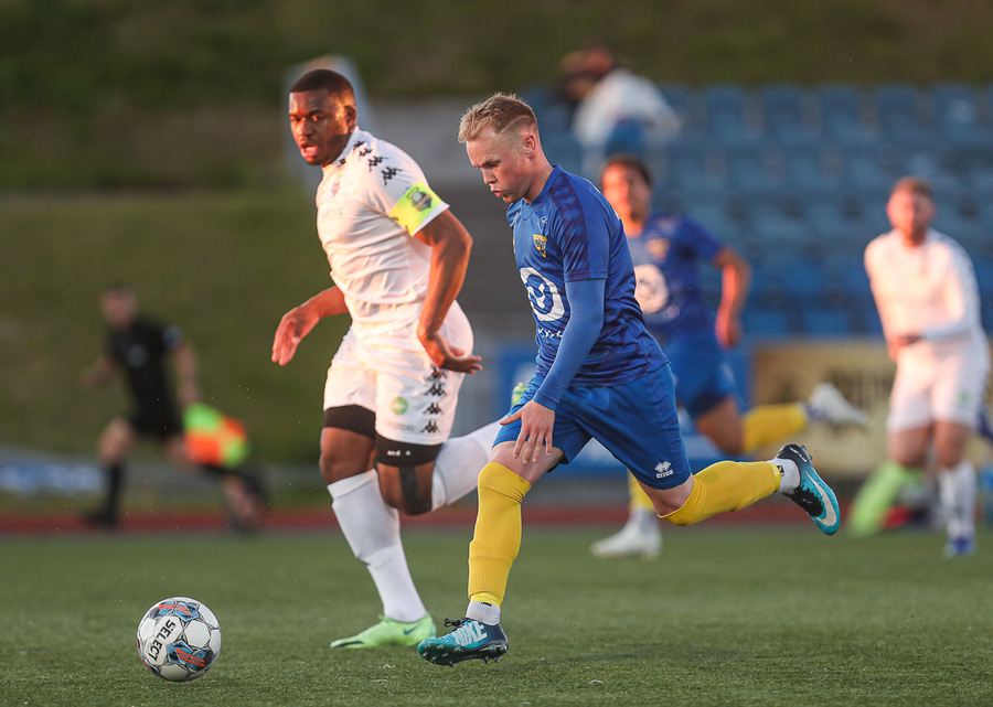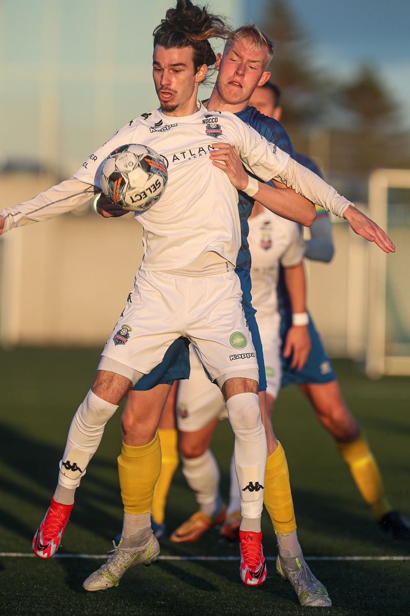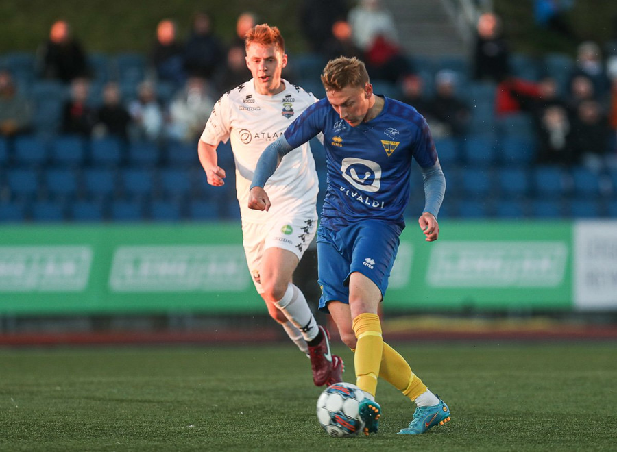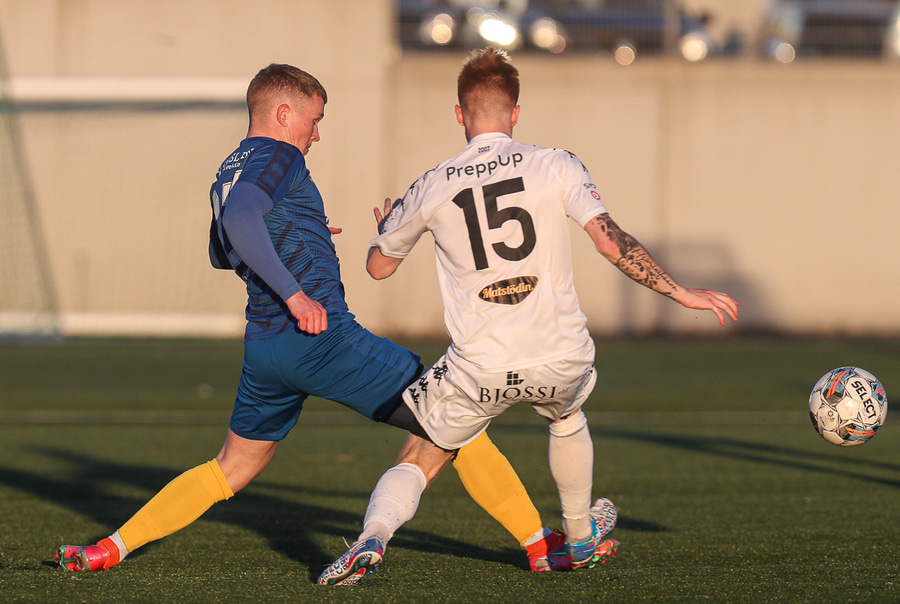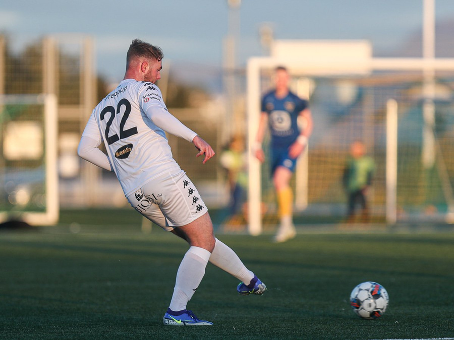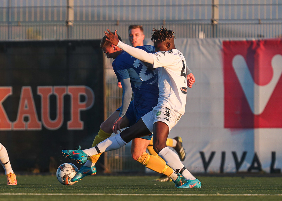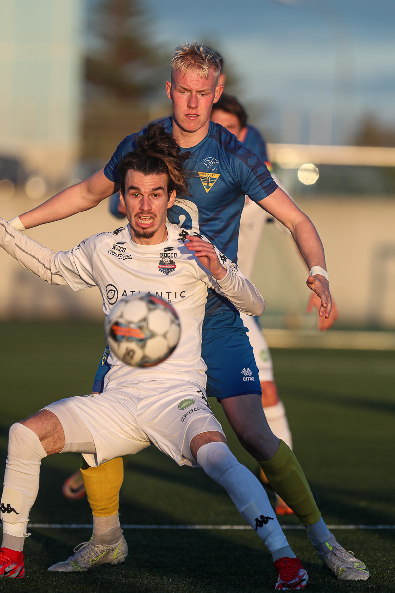 Kórdrengir attacker testing the Grótta defence. We will not flinch.