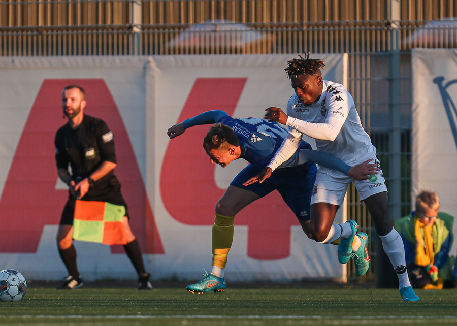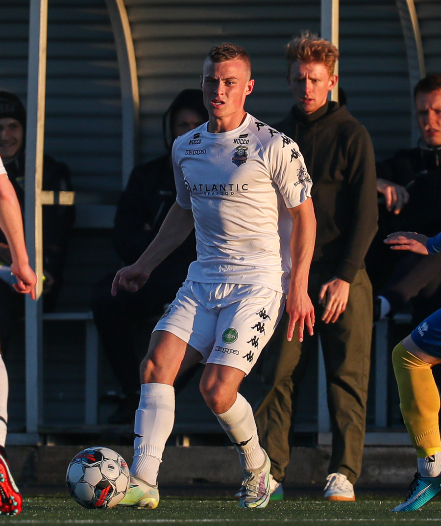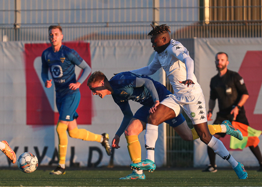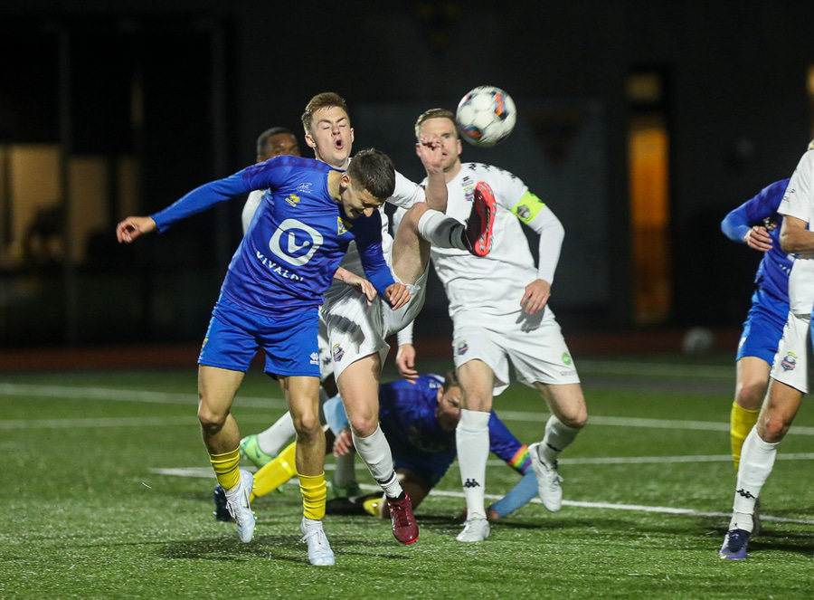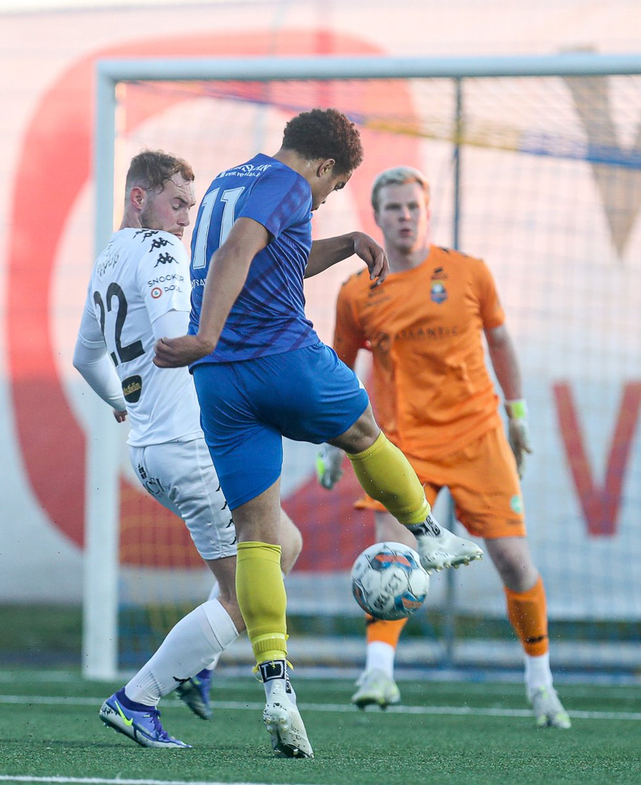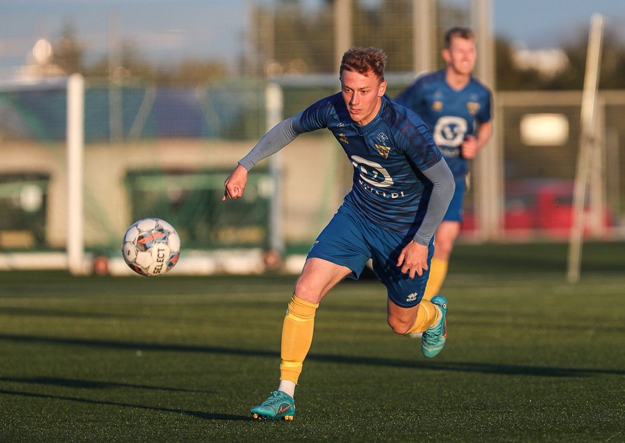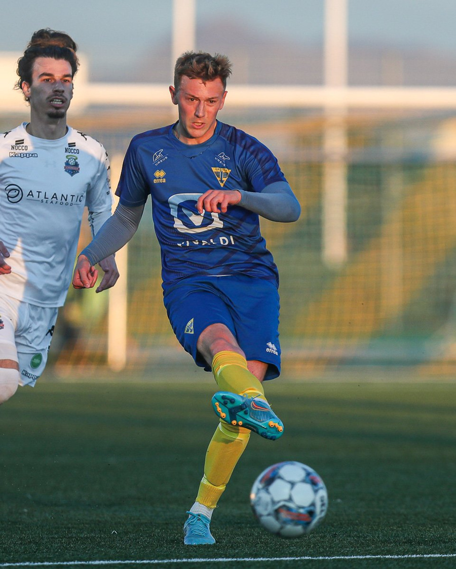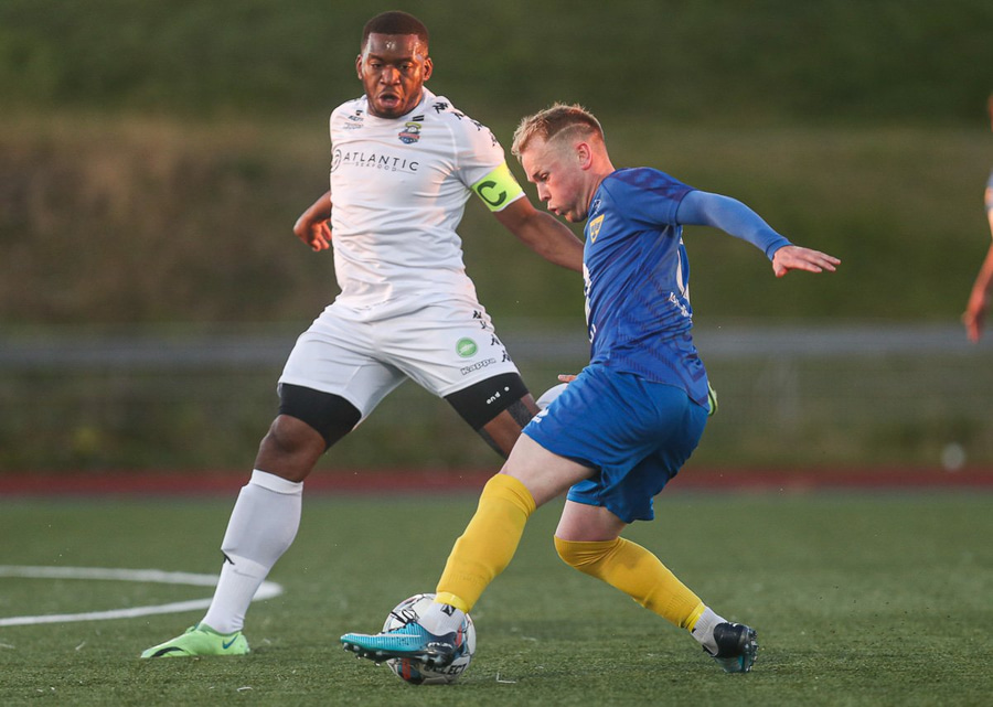 Kórdrengir attacker testing the Grótta defence. We will not flinch.
