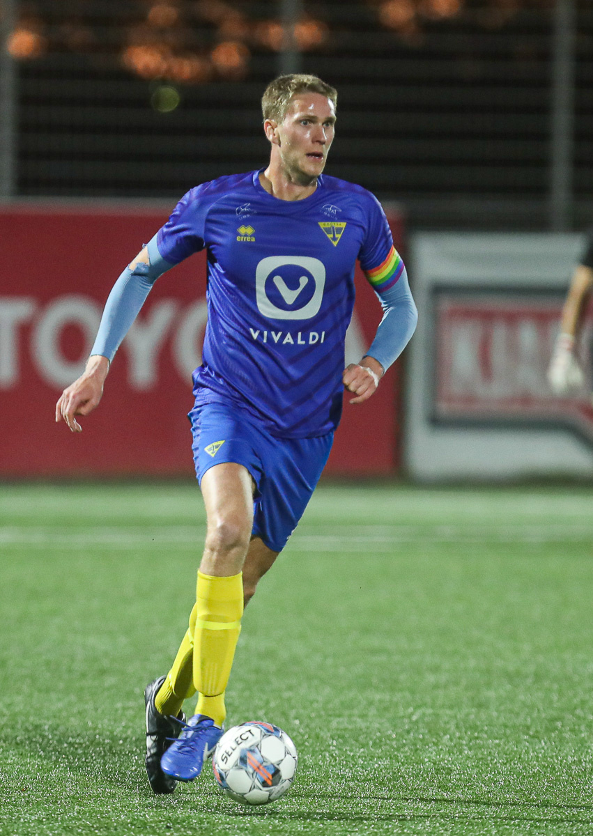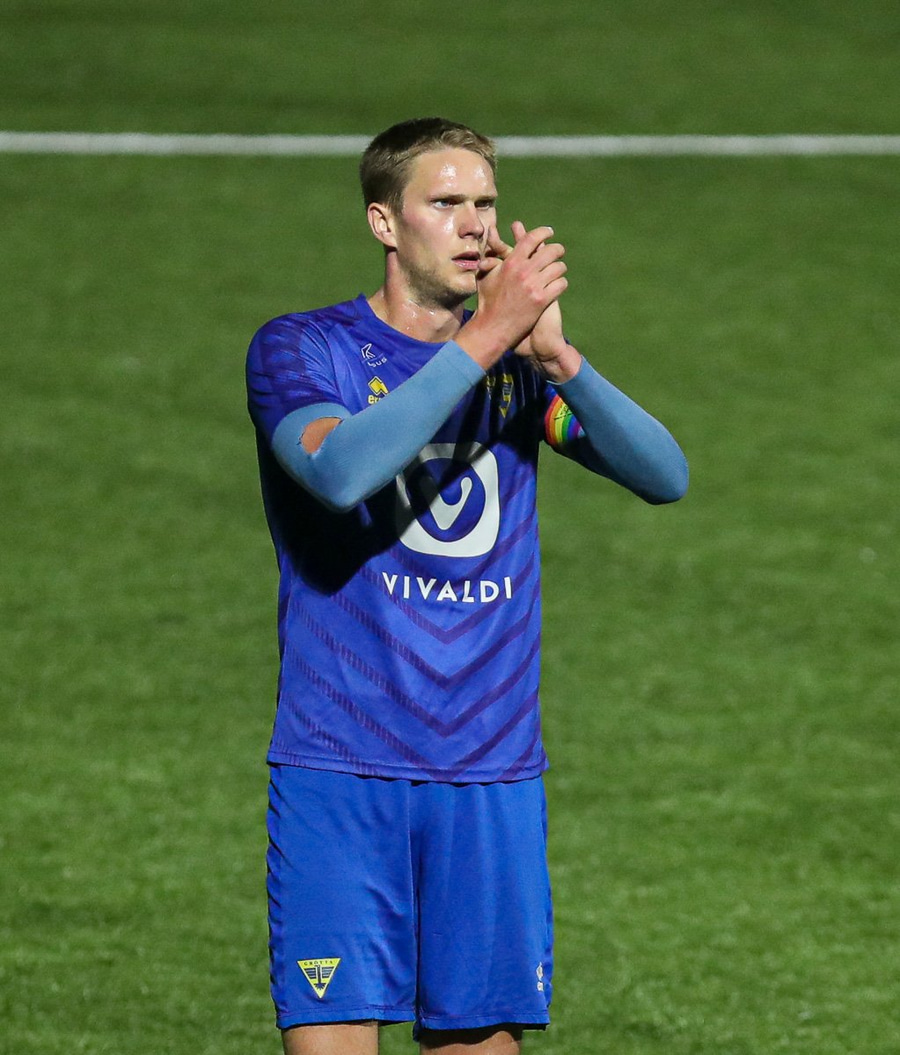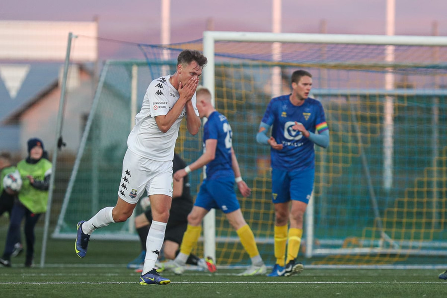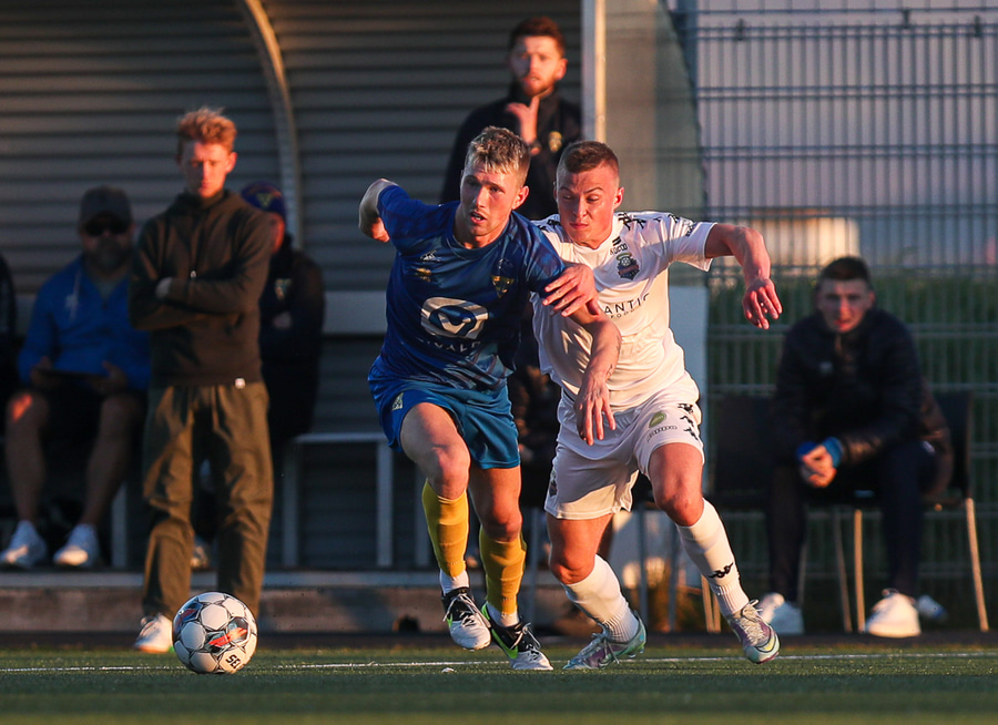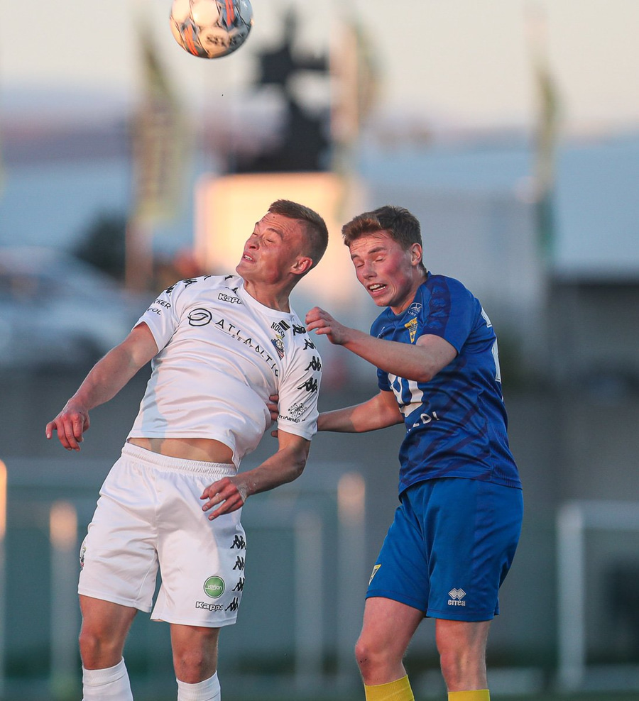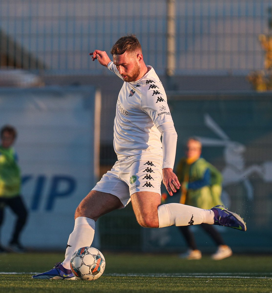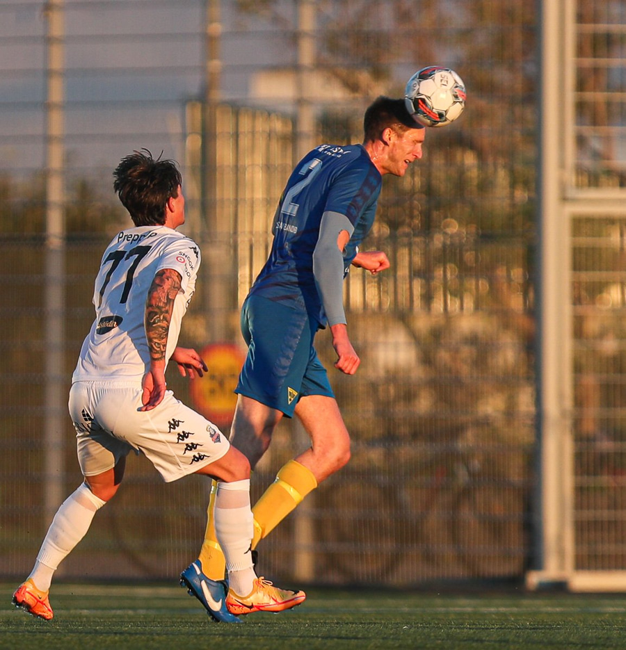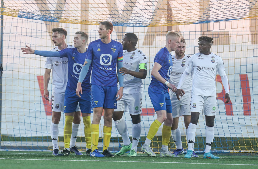 Kórdrengir attacker testing the Grótta defence. We will not flinch.