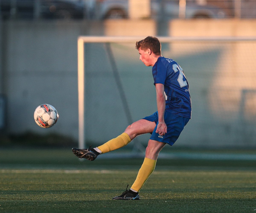 Kristófer Órri með spyrnu sem fer rétt yfir markið.