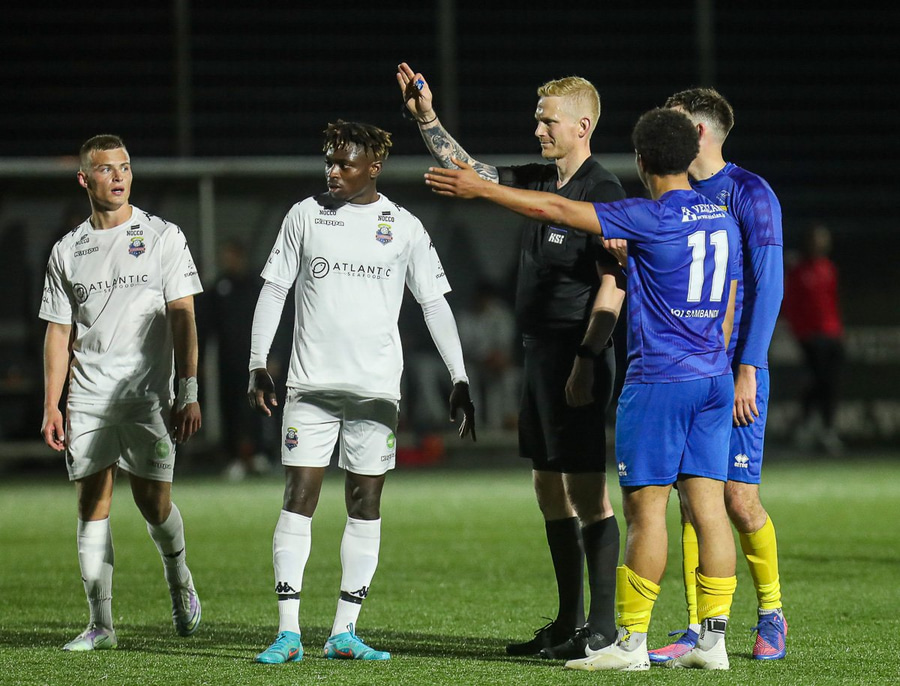 Óþægileg stemning hér eftir að leiknum er flautað til leikslokar. Chris var að tala við bæði Davíð og línudómaran um að Kórdrengir voru að ''time wasting'' og á sama tíma skora Kórdrengir 3 markið sitt. Þá vildi Chris að leikurinn væri flautaður af sem fyrst.