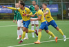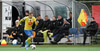 Grár himinn - gulir og bláir gegn grænum og hvítum. Allt að fara í gang á Greifavellinum.