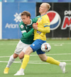 Bræðrasamstarf! Hrannar á fína fyrirgjöf á Hallgrím sem að er hársbreidd frá því að koma KA yfir!