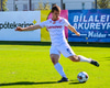 Birkir Heimis með skot að marki Leiknis en Arnór Smárason liðsfélagi hans var fyrir boltanum og setti hann aftur fyrir endamörk.