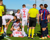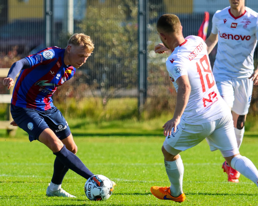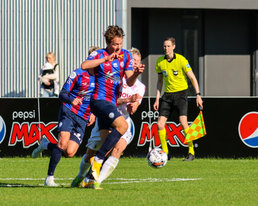 Ágúst Eðvald missti boltann og fór í Hjalta Sigurðsson og braut á honum. Hann fær áminningu fyrir brotið en þurfti að fá aðhlynningu því hann meiddist nokkuð við brotið. Hann virðist þó geta haldið leik áfram.