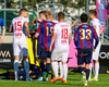 Leikurinn er hafinn. Leiknir í sínum hefðbundnu keppnisbúningum en Valur er í alhvítum varabúningum. Leiknir byrjar með boltann og sækir í átt að Unufellsblokkinni.