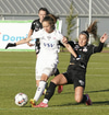Alveg nákvæmlega eins og markið sem var verið að dæma af! Nú á Tiffany fyrirgjöfina og Sandra stekkur hæst og skallar boltann í netið!