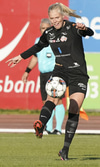 Viktorija Zaicikova í frábæru færi en af einhverjum ótrúlegum ástæðum nær hún ekki að setja boltann á markið.
