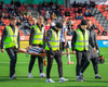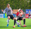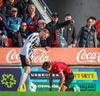 Jæja það er smá hiti að færast í þetta, Dani Djuric brotlegur og er ekkert á því að skila boltanum. Fer í taugarnar á KRingum sem ýta honum frá og fer Dani helst til auðveldlega.