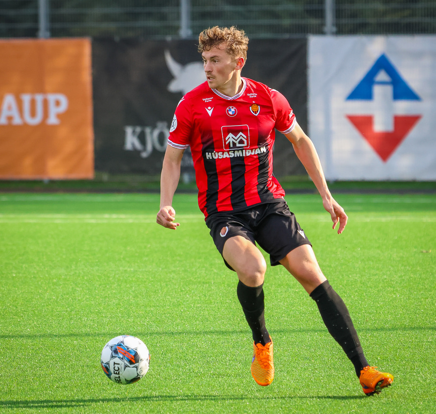 Viktor Örlygur með lúmskan bolta fyrir markið frá hægri en Birnir Snær skrefinu of seinn og missir af boltanum á fjærstönginni.
