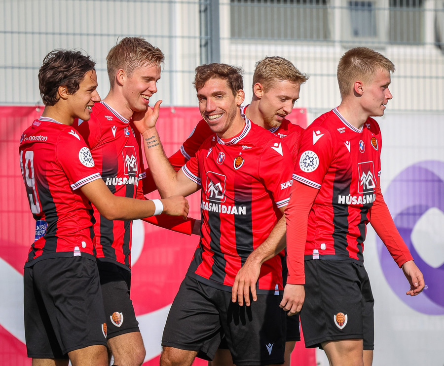 KR kemur aftur og Atli skilar boltanum í netið en aftur fer flaggið á loft.