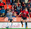 Spyrnan frá Kristjáni Flóka beint í vegginn, frákastið berst á Atla sem á skotið en boltinn vel yfir markið.