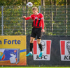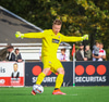 Hornið er gott og mér sýnist það vera Kristján Flóki sem nær til boltans og skallar að marki en Helgi Guðjónsson vel staðsettur og kemur í veg fyrir marki.