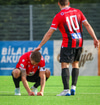 Samskiptaleysi hjá Arnóri og Beiti eftir áhlaup Ara en Arnór skallar boltann yfir Beiti en nær á ótrúlegan hátt að bjarga á marklínu frá sjálfum sér!