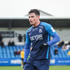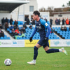 Adam Ægir reynir skot af löngu færi en boltinn ofan á þverslánna.