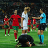 Og að manneskjan hafi ekki rekið rauða spjaldið til baka er enn heimskara. Boltinn á leið að hliðarlÃnu, sú portúgalska ekki à upplögðu marktækifæri og aldrei með vald á boltanum. Hvernig er þetta hægt?