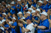 Stuðningsfólk Íslands er mætt út á völl og er nú þegar farið að láta vel í sér heyra. Guðni Th. Jóhannesson, forseti Íslands, lætur sig ekki vanta!