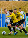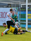 Eyþór Wöhler í fínni stöðu í teig FH en nær ekki að koma boltanum framhjá Jóhann Ægi sem setur boltann afturfyrir í horn.