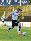Lennon hirðir boltann af Aroni Bjarka og kemst einn gegn Árna. Árni gerir vel í að mæta út á móti og þrengja færið og ver vel með hægri fæti.