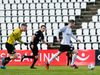 Skagamenn sækja hratt, Eyþór fær boltann i teignum en heimamenn hreinsa í horn.
