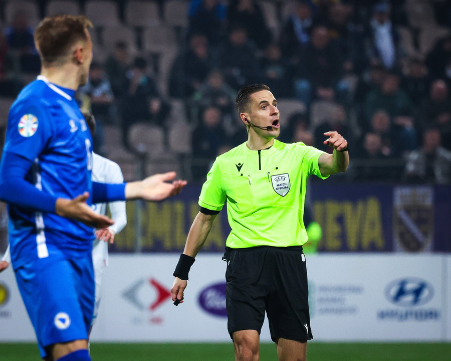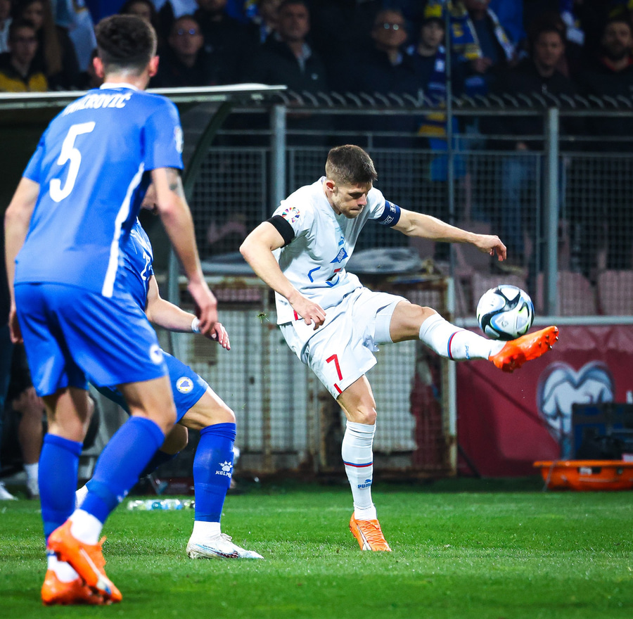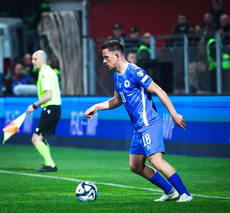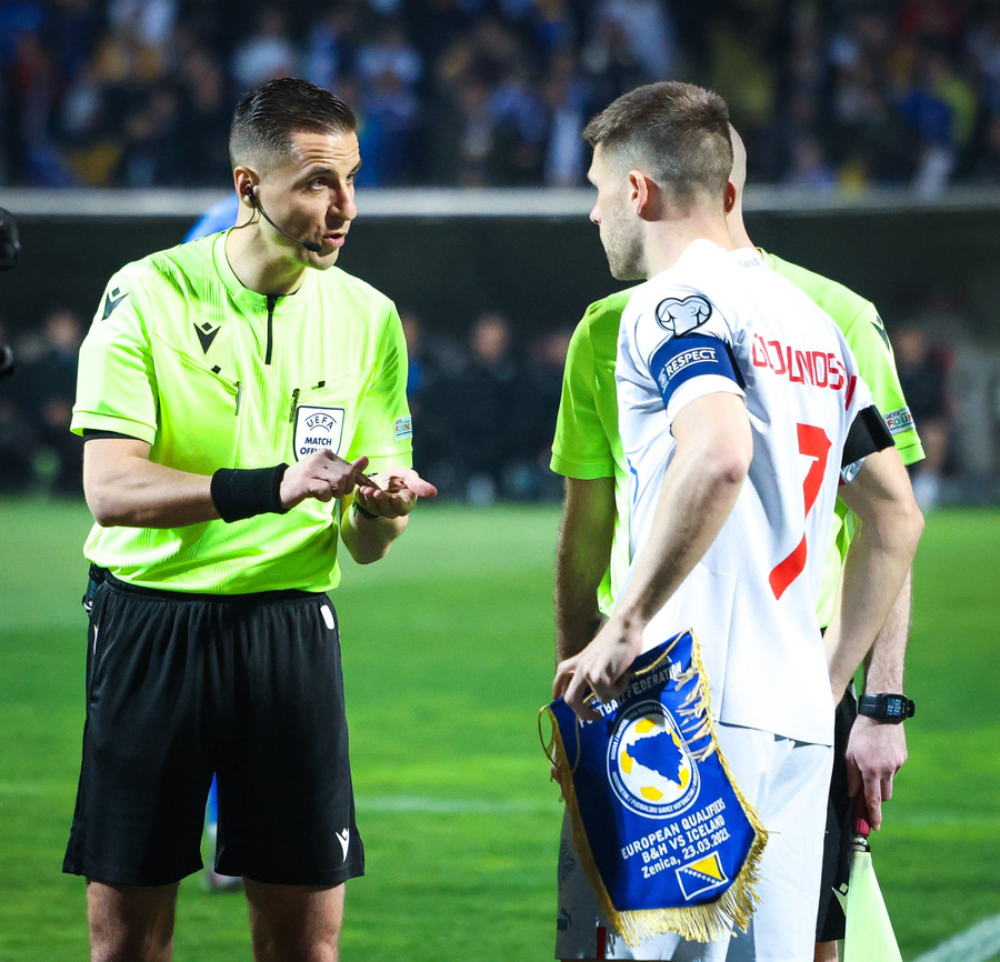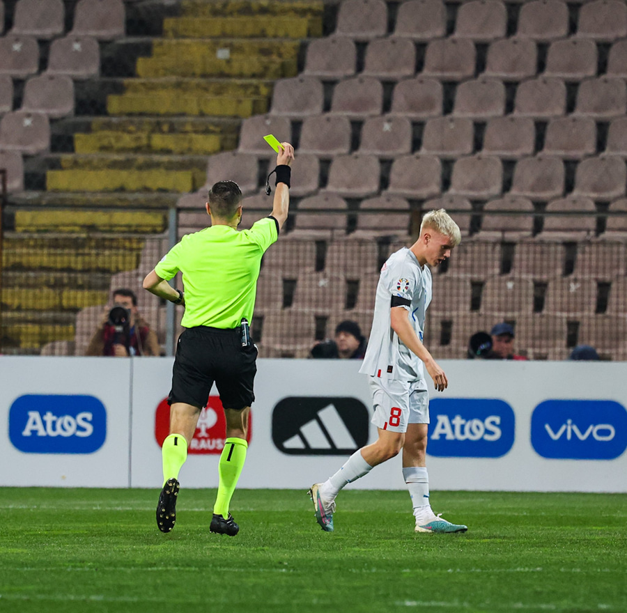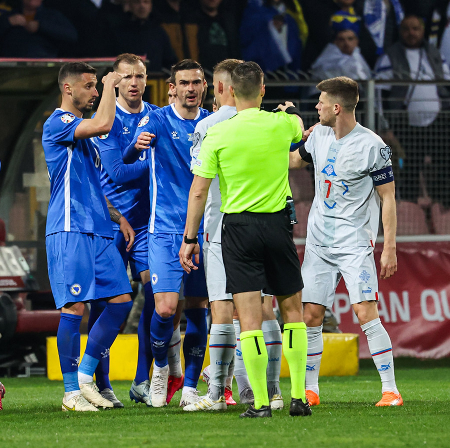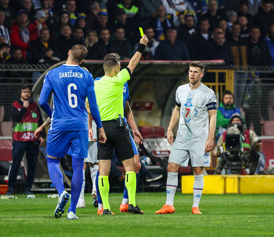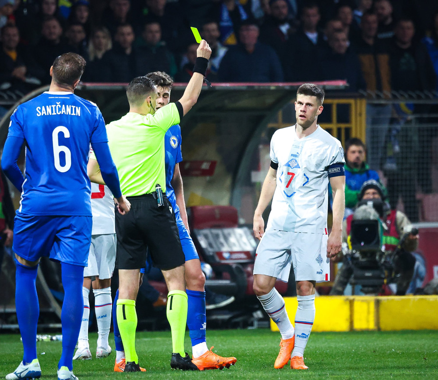 Gult spjald: Benjamin Tahirovic (Bosnía og Hersegóvína)