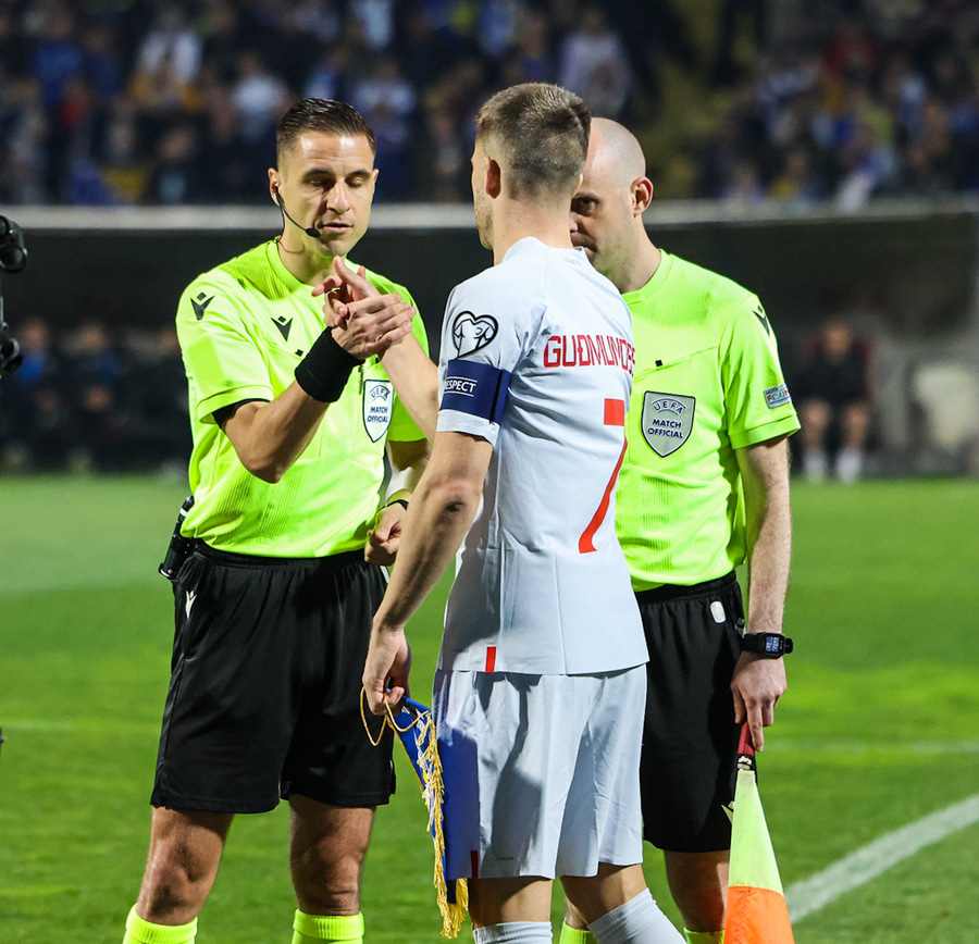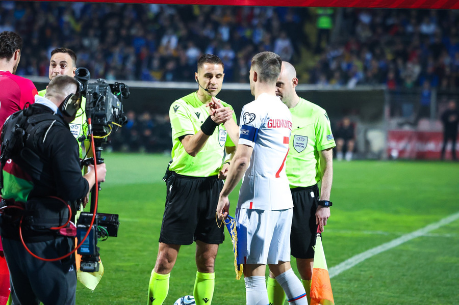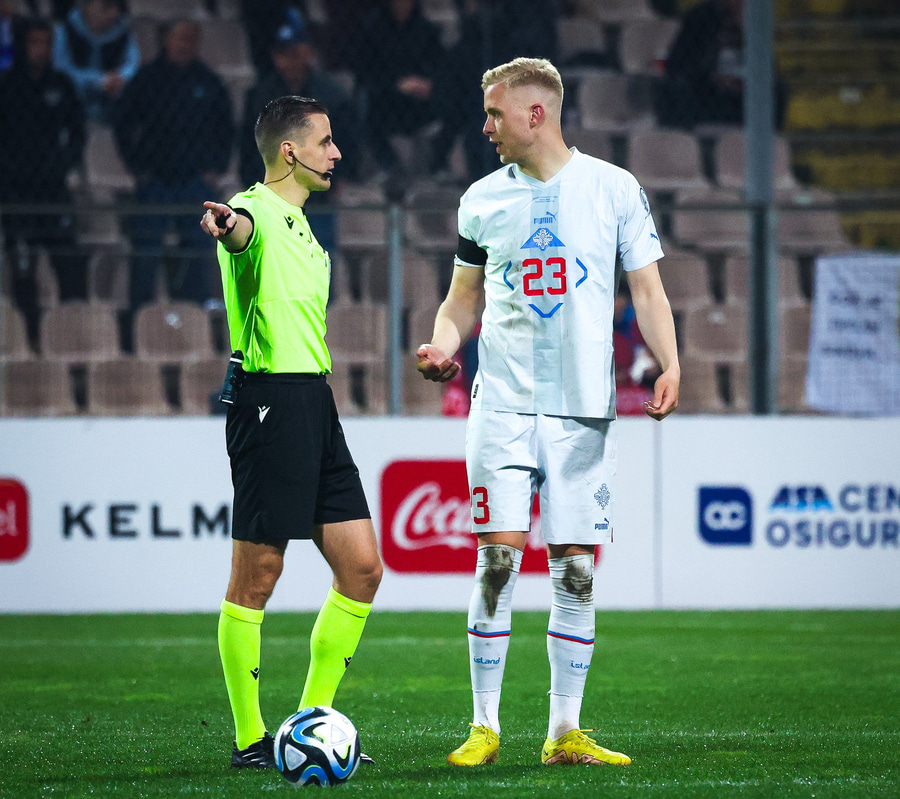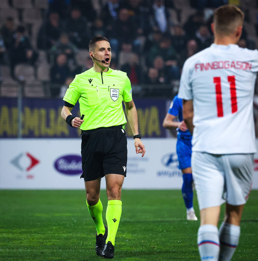 Dómari frá Litáen, Donatas Rumsas, verður að störfum í kvöld. Rumsas er 35 ára byggingaverkfræðingur. Dómaratríóið og fjórði dómarinn á vellinum koma allir frá Litáen en hinsvegar verða VAR dómararnir ítalskir. Paolo Valeri er VAR dómari leiksins.